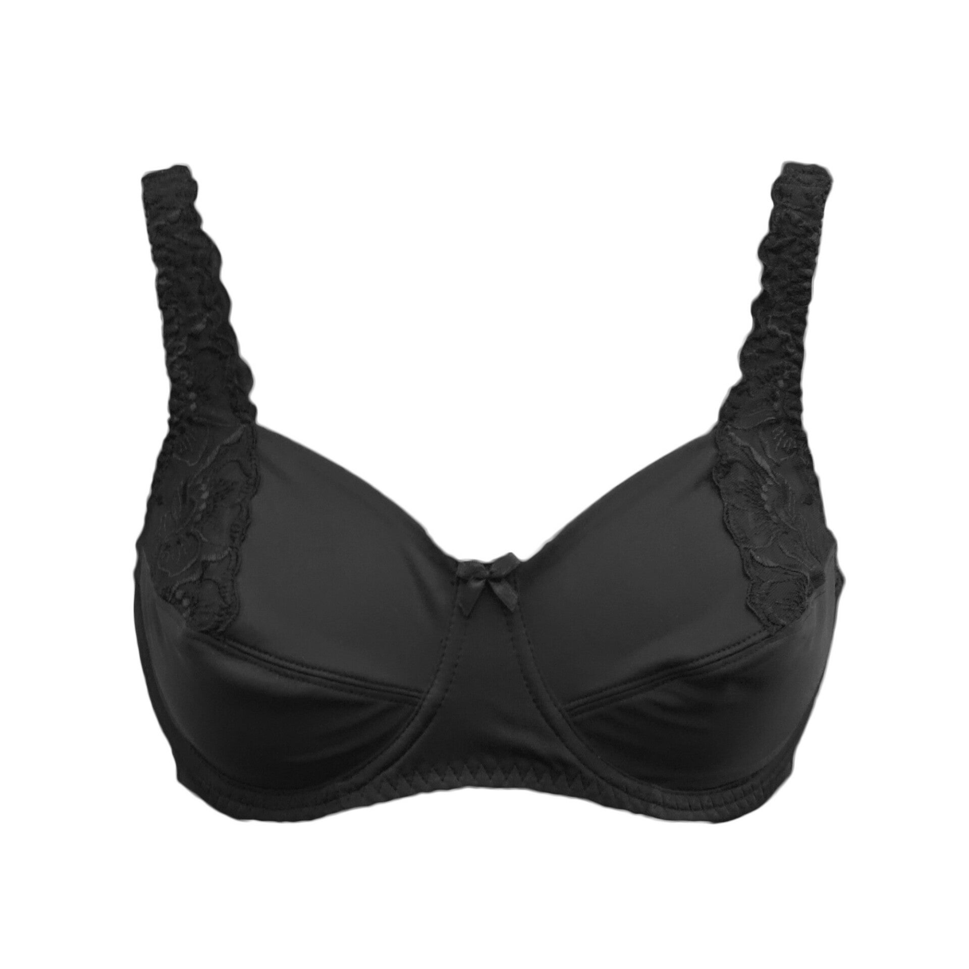 Niet voorgevormde zwarte beugelbeha afgewerkt met prachtig borduursel.