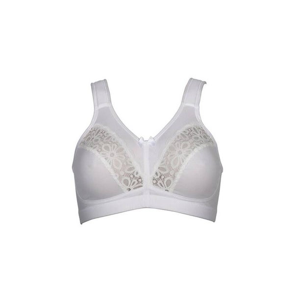 Deze bh is het toppunt van een beugelloze comfort beha. De bh is gemaakt van katoen met kant detail op de cup. Het zachte katoen zorgt ervoor dat deze beha heerlijk is om te dragen en je voelt nauwelijks dat je iets aanhebt. De beha heeft verstelbare schouderbandjes en een haak- en oogsluiting aan de achterzijde.