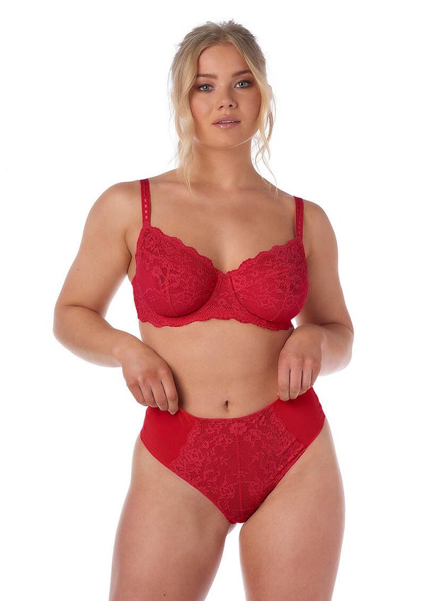 High waist string vervaardigd uit gerecyclede materialen; mesh gecombineerd met mooi kant. Chique, duurzaam en onmisbaar!