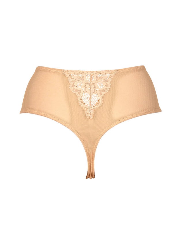 High waist string vervaardigd uit gerecyclede materialen; mesh gecombineerd met mooi kant. Chique, duurzaam en onmisbaar!